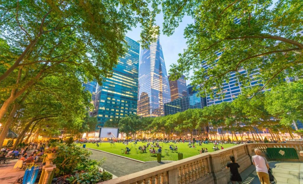 Bryant Park proporciona un escape tranquilo para aquellos que buscan un respiro en medio de la energía urbana. Al explorar el parque, descubrirás extensos céspedes, jardines y áreas de descanso. Además, cuenta con instalaciones como pistas de petanca, mesas de ping-pong y ajedrez al aire libre.
