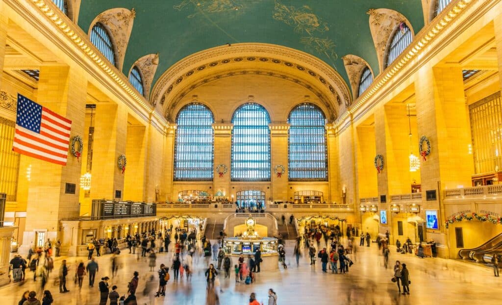 La Grand Central Terminal es un ícono cautivador de Nueva York, y lo mejor es que puedes explorar muchos de sus espacios sin costo alguno. Entre las notables obras de arte se encuentra el impresionante “Mercury Clock”, una representación del veloz dios romano del comercio. El techo del vestíbulo principal, llamado “Gloria in Excelsis Deo”, despliega un aire celestial que añade un toque de grandeza. La escultura de bronce “The Glory of Commerce” en el reloj, simboliza la prosperidad económica y la visión futurista. Y por último, experimenta el muro de los susurros en “The Whispering Gallery” donde los murmullos son claramente audibles a través de su cúpula.